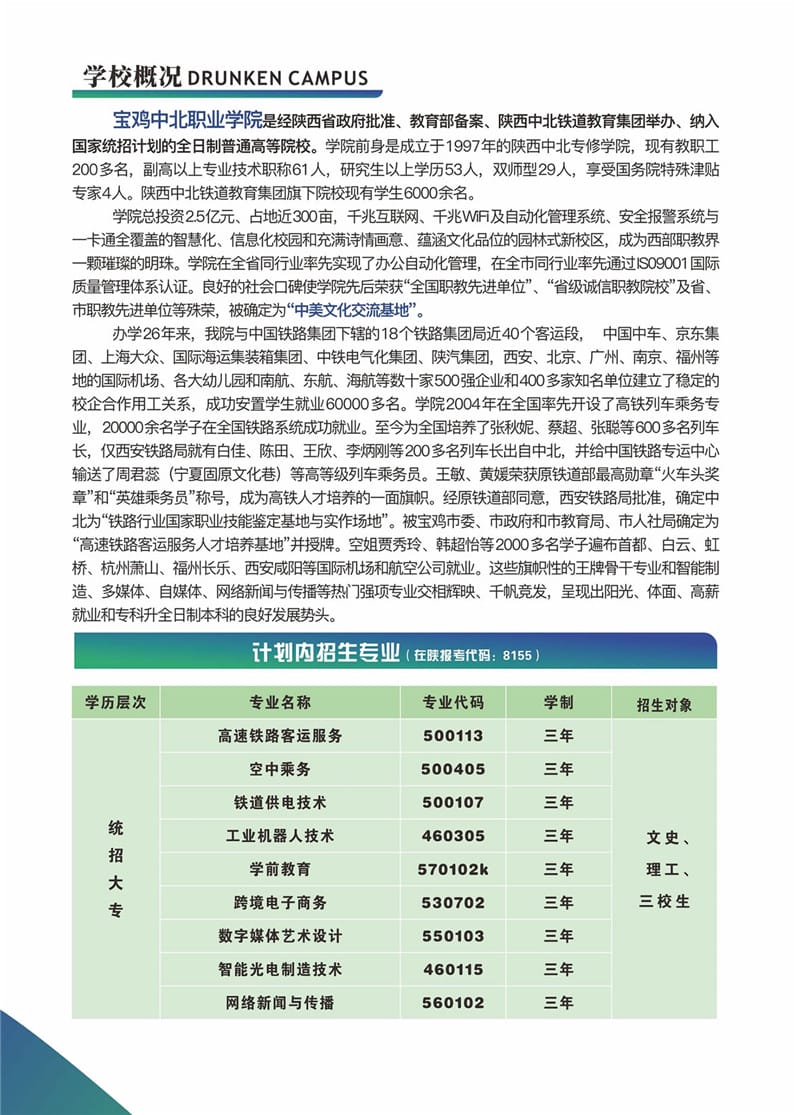 宝鸡中北职业学院2023招生简章